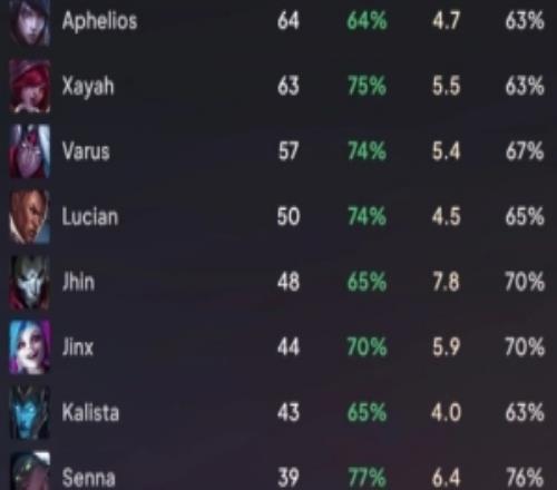 体育资讯10月14日称 数据网站统计Gumayusi生涯英雄:厄斐琉斯场次最多,卡莎胜率仅36%。
