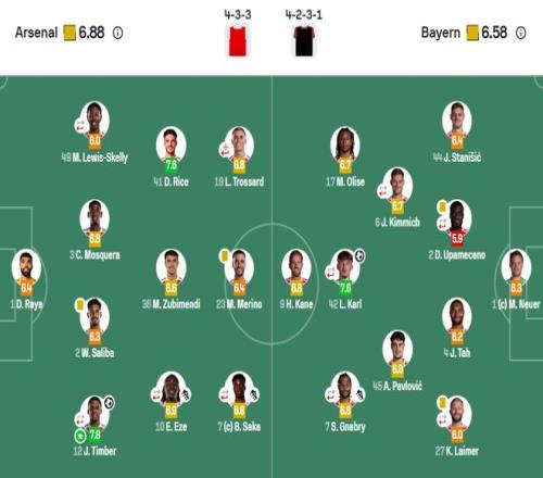 此外,拜仁的于帕梅卡诺获评5.9分,也是全场最低分,拜仁门将诺伊尔获评6.3分,也是不及格的分数。