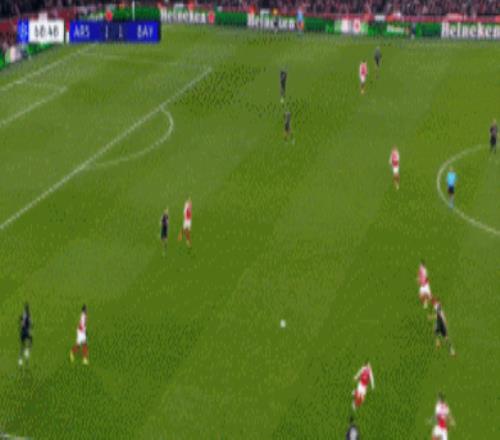 上半场,两队踢得势均力敌,射门3比3、射正1比1、创造破门良机1比1、角球机会1比1。第22分钟,萨卡角球助攻廷伯甩头攻门得手,帮助阿森纳1-0领先,随后第32分钟,格纳布里禁区做球送助攻,17岁卡尔跟进垫射破门,帮助拜仁1-1扳平比分。