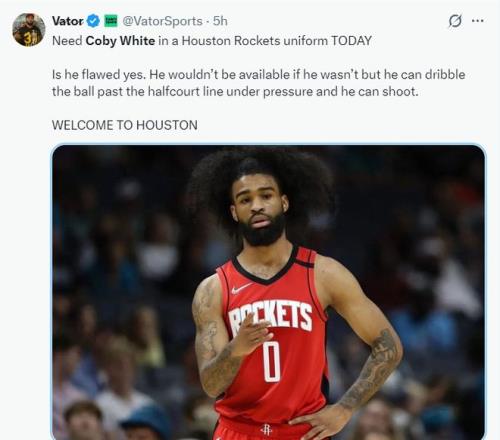 休媒Bradeaux则直言:不管怀特的交易是否发生,我都不希望是跟休斯顿扯上关系。他在评论区与球迷的互动明确表态怀特根本不契合火箭的体系,怀特不是一个纯正的一号位球员而且不擅长防守。